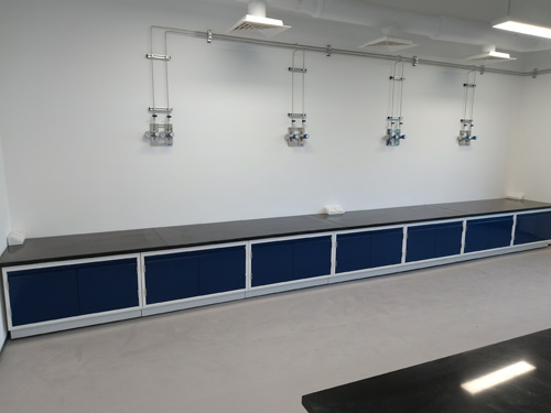 4.櫥柜柜門屜子:PVC掩藏式門拉手,每一家屜子帶隔音急停開關模塊,承載力為35kg上,選取厚1.0mm的冷軋厚鋼板厚鋼板模壓定型,幾乎所有櫥柜柜門接觸面均途經EPOXY RESIN粉狀靜電能靜電噴涂治理 ,具備著抗耐酸堿、防化、防霉、耐溫度各種抗磨損;下邊選取三節式導軌,折疊自如友家,儲藏或取化學品簡便方法。